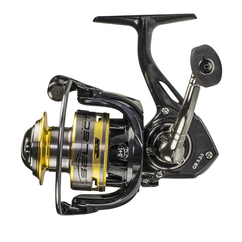 А также долгожданная новинка катушки Select Galaxy Данные катушки имеют современный дизайн. Чтобы снизить общий вес, в качестве используемого материала для корпуса используется графит. Дополнительную легкость придает специальный дизайн ротора. При этом достигается оптимальное соотношение веса и прочности катушки. Для более плавной работы Galaxy оснащены шестью подшипниками. Пять из них стальные закрытого типа и один роликовый. Так же есть система обратного стопора Zero Reverse, предотвращающая проворачивание ротора в обратную сторону. Катушки имеют одинаковое передаточное число 5.2:1 и весят от 193 до 255 гр, в зависимости от модели. Внутренний механизм простой и надежный одновременно. Шпуля с перфорацией изготовлена из алюминия - легкого и достаточно надежного материала. А чтобы заброс приманки осуществлялся на максимально дальнее расстояние, бортик покрыт нитридом титана, что дает малое сопротивление при сходе лески.