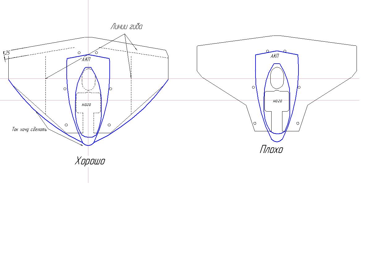 Также думаю, что в идеале гидрокрыло может скорректировать процесс выхода на глиссер, сократив по времени переходный процесс. Ту же цель преследует и интерцептор (опорная пластина), однако если интерцептор будет загнутым вниз - выход на глиссер очень хороший, но в процессе глиссирования начинет вредить, создавая дополнительное сопротивление, а гидрокрыло, как мне представляется, можно вывести над поверхностью воды (на глиссе), при этом вредить оно не будет. Если же ГК в стадии глисса будет плыть по поверхности воды (или в толще) - это снижение КПД ПЛМ. Для достижения желательного эффекта от ГК потребуется море эксперимента с местом установки гидрокрыла на сапоге ПЛМ для конкретного комплекта (в т.ч. по высоте (т.е. совсем не обязательно в плоскости АКП)), с углом "атаки", и его формой...