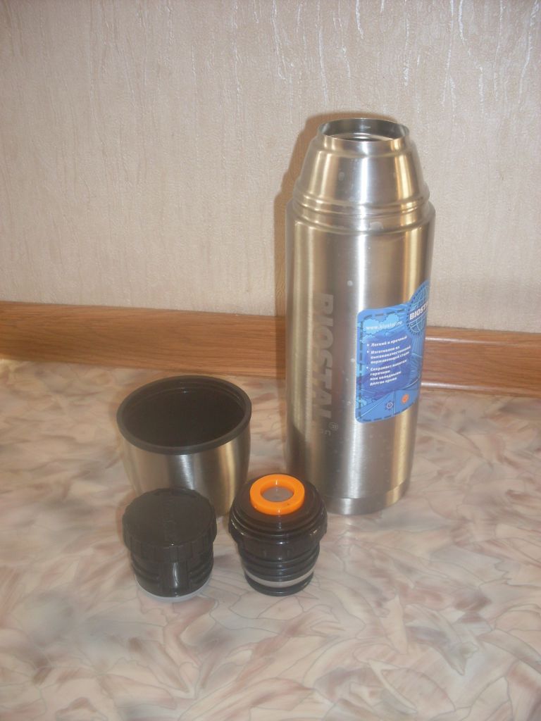Термосом Биосталь 1,5 литра пользуюсь уже шесть лет так сказать "в хвост и гриву", особо не берег в силу его низкой стоимости Ничего плохого о нем сказать не могу, так как при заправке утром, до вечера чай горячий. Именно горячий, то есть при температуре окружающего воздуха -27, с 9 до 16 часов термос прекрасно держит. SDC16311.JPG