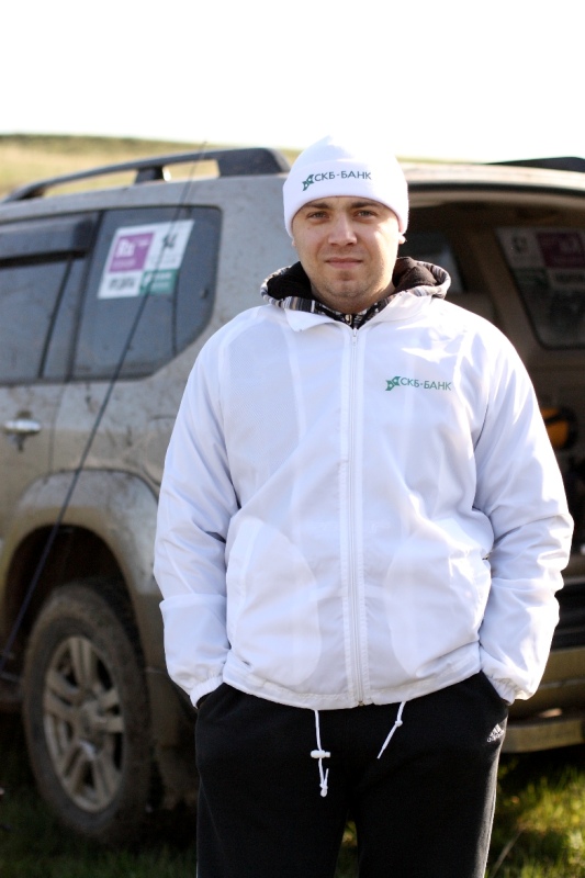 Наш тренер и представитель спонсора Гончаров Евгений в боевой раскраске «СКБ-Банка»