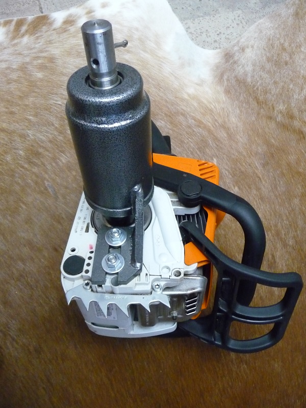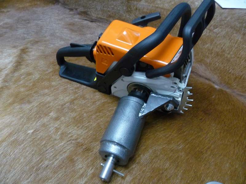 в приципе ни чего сложного на фигурную пластину крепиш редуктор от мощной дрели в патрон зажимаеш переходник к шнеку вытачиваеш втулку которая одевается одной стороной на звездочку центробежной муфты а другой стороной приварена к червячному валу редуктора все это крепится двумя гайками что и полотно пилы одной заправки б\пилы Штиль хватает лунок на 20