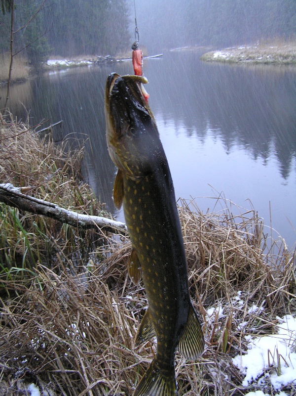 У нас зима так и не пришла. Час назад вернулся с речки. Берёт щука на воблеры и резину 50/50. Изловил шесть хвостов от кило до двух (прибл.). Мокрый снег с дождём и батарейка в фотике села, а в остальном хорошо! :mrgreen:
