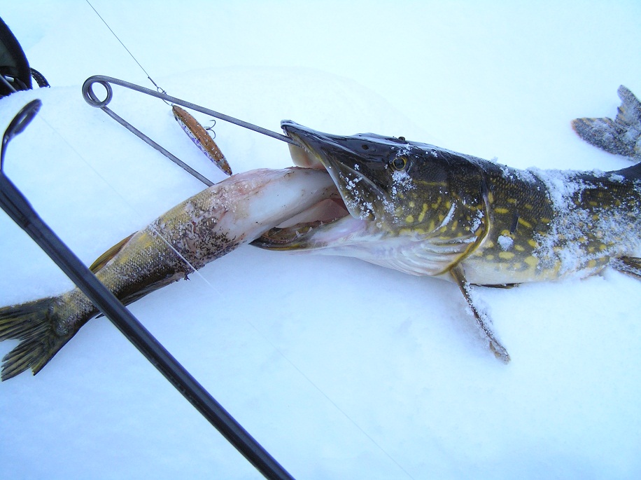 Ловил сегодня "новогоднюю щуку", опять на воблеры. Четыре поймал, две сошли, от резины опять нос воротит (через очки воочию наблюдал). Одна трёшка- забрал к новогоднему столу :D , в пасти у неё полукилограммовка застряла. В общем новогодняя рыбалка удалась ;)