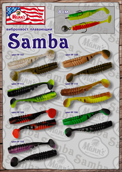 Виброхвост Samba, в отличии от традиционных силиконовых приманок, которые тонут в воде, благодаря специальному составу силикона, имеет плавающие свойства. Продукция, изготовленная в США на современном оборудовании компании Manns, создавалась совместно с российскими специалистами - были использованы чертежи экспертов «Рыбачьте с нами». Плавающая силиконовая приманка значительно расширяет возможности ловли, позволяя рыбачить в окнах между растительностью, в закоряженных местах и на мелководье. Благодаря использованию шарнирного крепления двойник + груз "чебурашка", виброхвосты Samba способны наиболее точно имитировать кормящуюся рыбу, зависая вертикально у дна. Плавающий виброхвост Samba имеет нестандартные насечки на хвосте, зигзагообразные, что дает отличную подвижность хвоста при большей его прочности. На теле Samba есть специальные канавки для надежного крепления в расщепе двойного крючка. Одеть и снять приманку вы сможете, не повредив силикон.