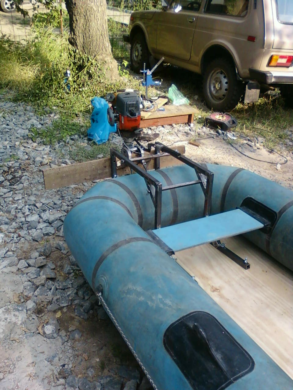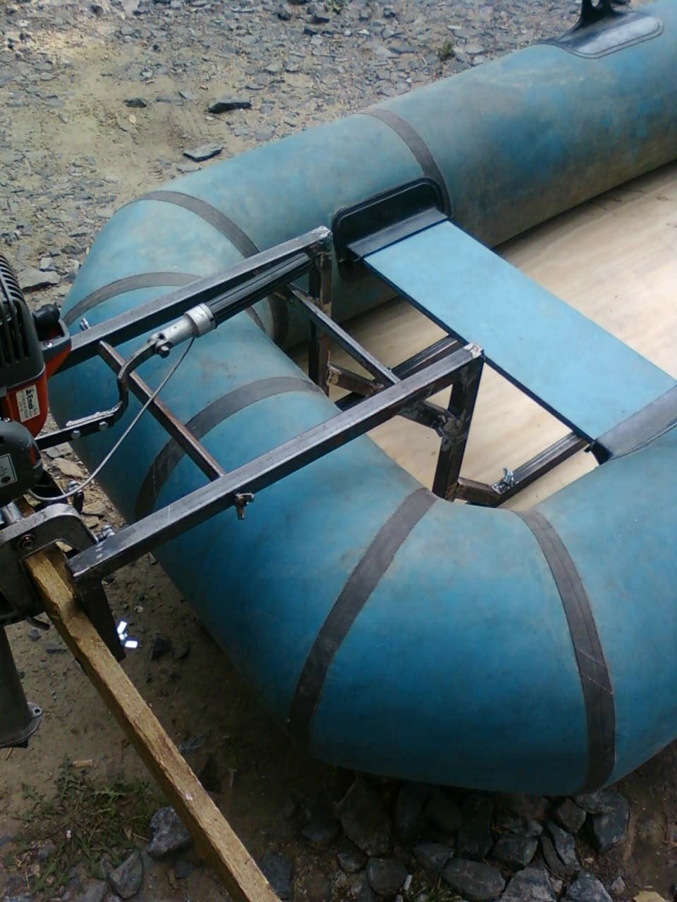 Посмотреть лодку на видео под моторчиком от косилки 1 лс можно тут( если кому интересно, 6км в час что в одного 100кг тушка что вдвоем плюс еще 60 кг тушка) http://youtu.be/42jngTYdyiY , других видео к сожалению нет. На фото на транце доска, примеряли. Сейчас толстая фанера в 2 слоя. Идеально для троллинга под электромотором или самоделкой вроде моей.