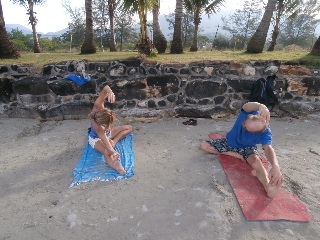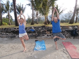 Бегом и прочим по утрам занимается много народа. Русских нет, кроме меня и Андрея из Красноярска. Правда вчера вечером познакомились с продвинутым йогом из Боснии. Хорошо говорит по русски, а руки заплетает еще лучше - на неимоверное количество узлов.