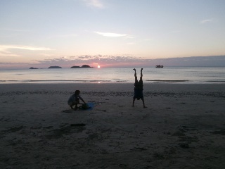 Познакомился с земляком из Красноярска, отличный пловец, скалолаз, с утра пораньше делает растяжку на берегу минут на сорок, потом плывет до острова и обратно, так вот он вообще не зает ни слова, тем не менее с австралийкой, такой же упертой по "физзарядке" как он общается прекрасно...