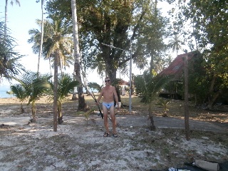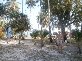 image.jpgНа поляке с лежаками, столиками, барной стойкой ставим палатку. Рыбачить нет времени, вечереет, надо готовить ужин (эстетам это не читать) и мы ставим сетешку, в которую на утро запутались три краба среднего размера. Подваливают охранники, хотят 500 бат, сходимся на 200 и вечером они нас приглашают выпить виски и поговорить о смысле жизни. После выпитого мы легко понимаем тайский, а они наш язык.