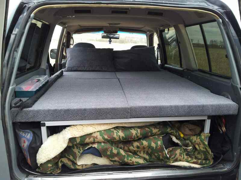 Покупая патриот я тоже намеревался делать спальник с ящиками - но обкатав его, понял - мне это не надо. Спать я люблю в палатке. А 1 - 2 ночи на охоте или рыбалке в минусовую погоду можно и так поспать разложив салон. Необходимо только подголовники снять с передних сидений и положить на сидения заднего ряда подушки - на которых будет базироваться "попа". У меня 2 грыжи в пояснице и ни разу не испытывал дискомфорт после ночевок в таком варианте.Roms сказал(а):НЕ надо проекты, все уже давно в наличии.