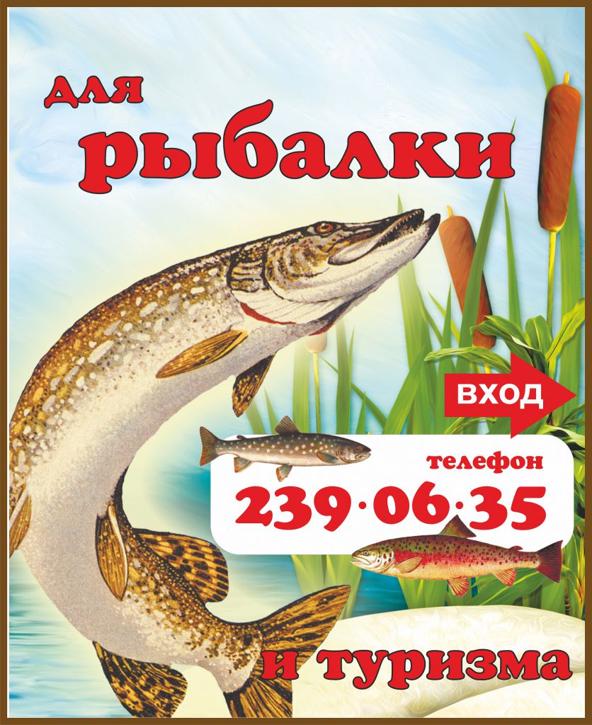Товары: рыболовные снасти, туристическое снаряжение, лодки