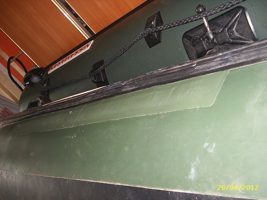 В конце ноября на последней рыбалке,вытаскивая лодку на берег об арматуру порезал задний левый балон в районе привального бруса.Порез прямой примерно 1.5м.Лодка Ротан 380.