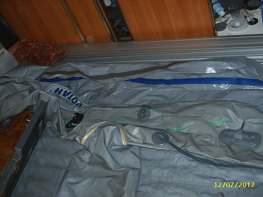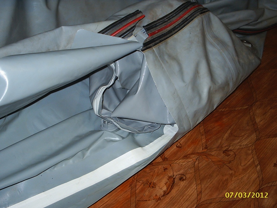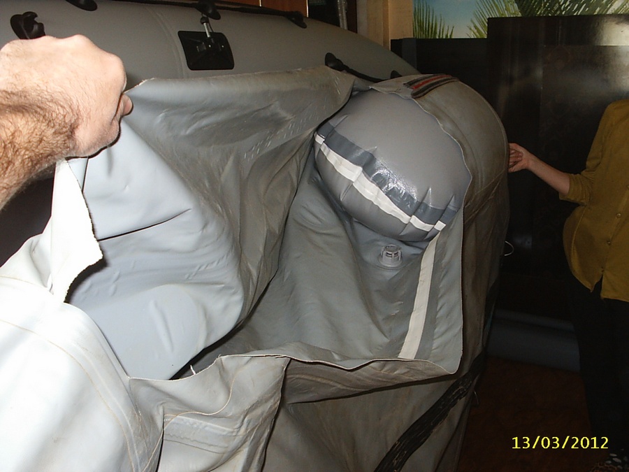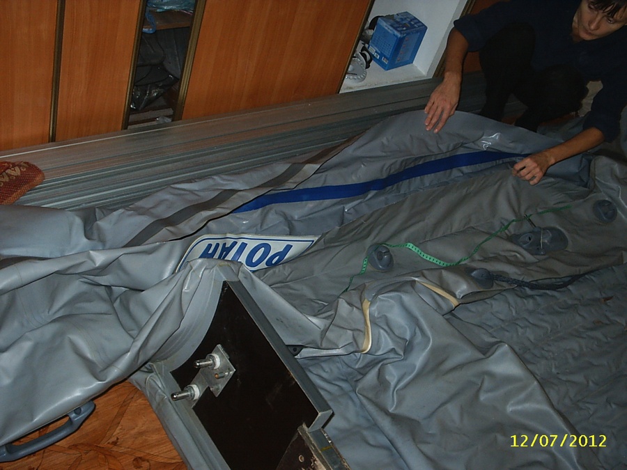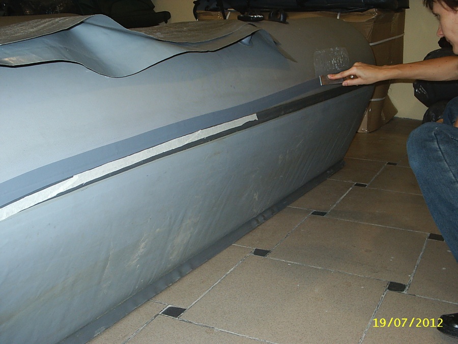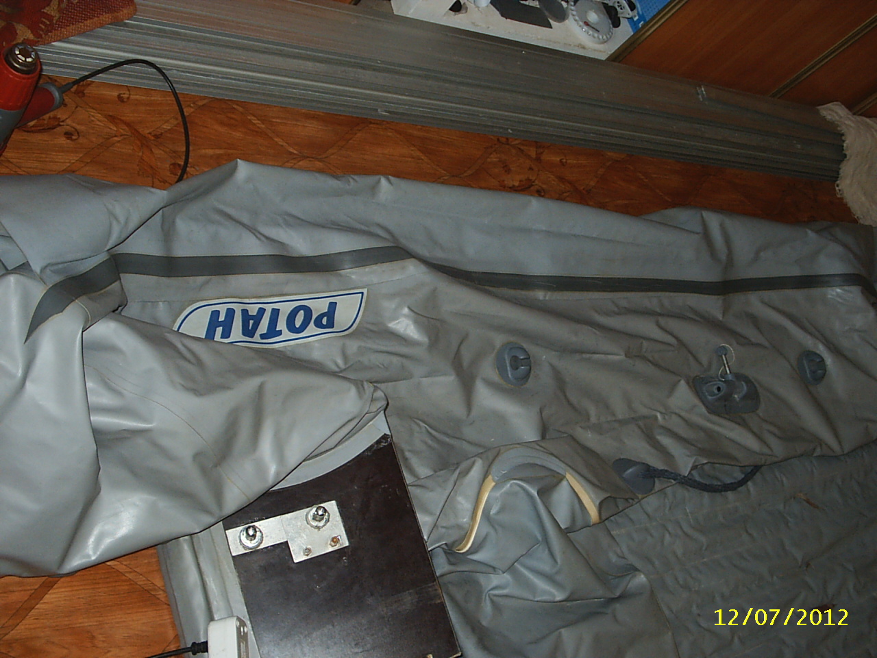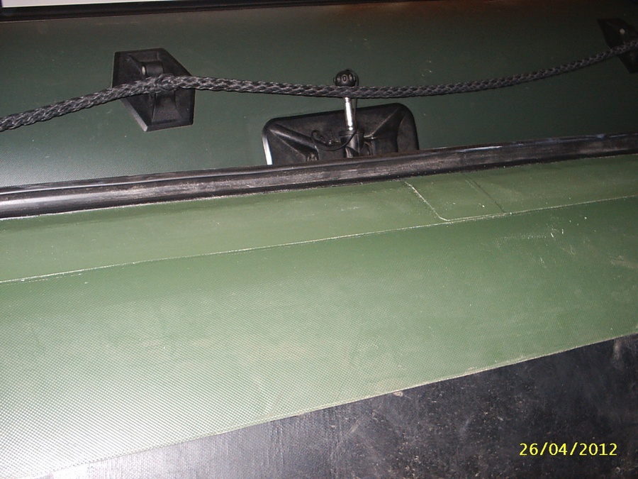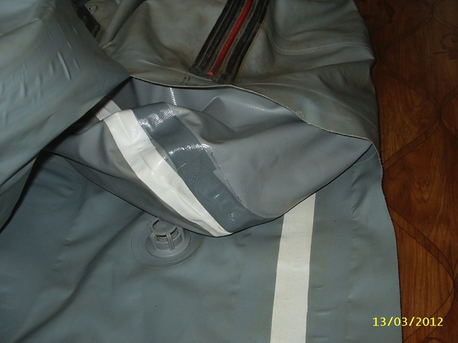 После того как лодка наткнулась на арматуру, получился разрыв по материалу вдоль баллона длинной 170см.