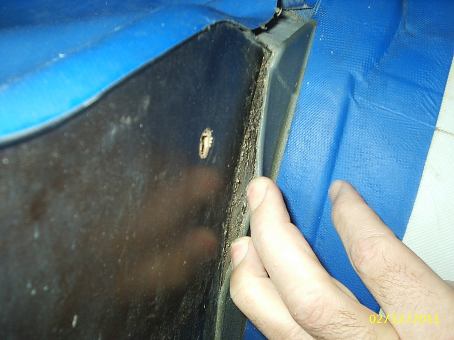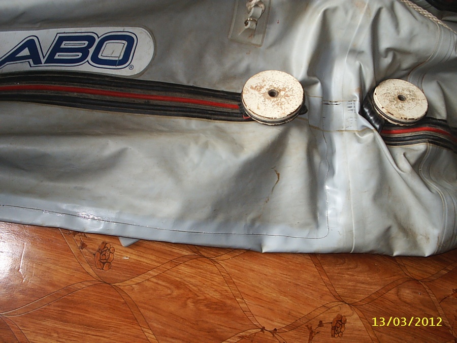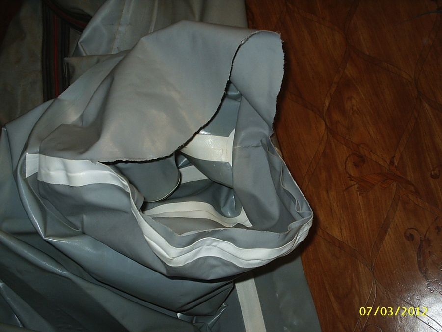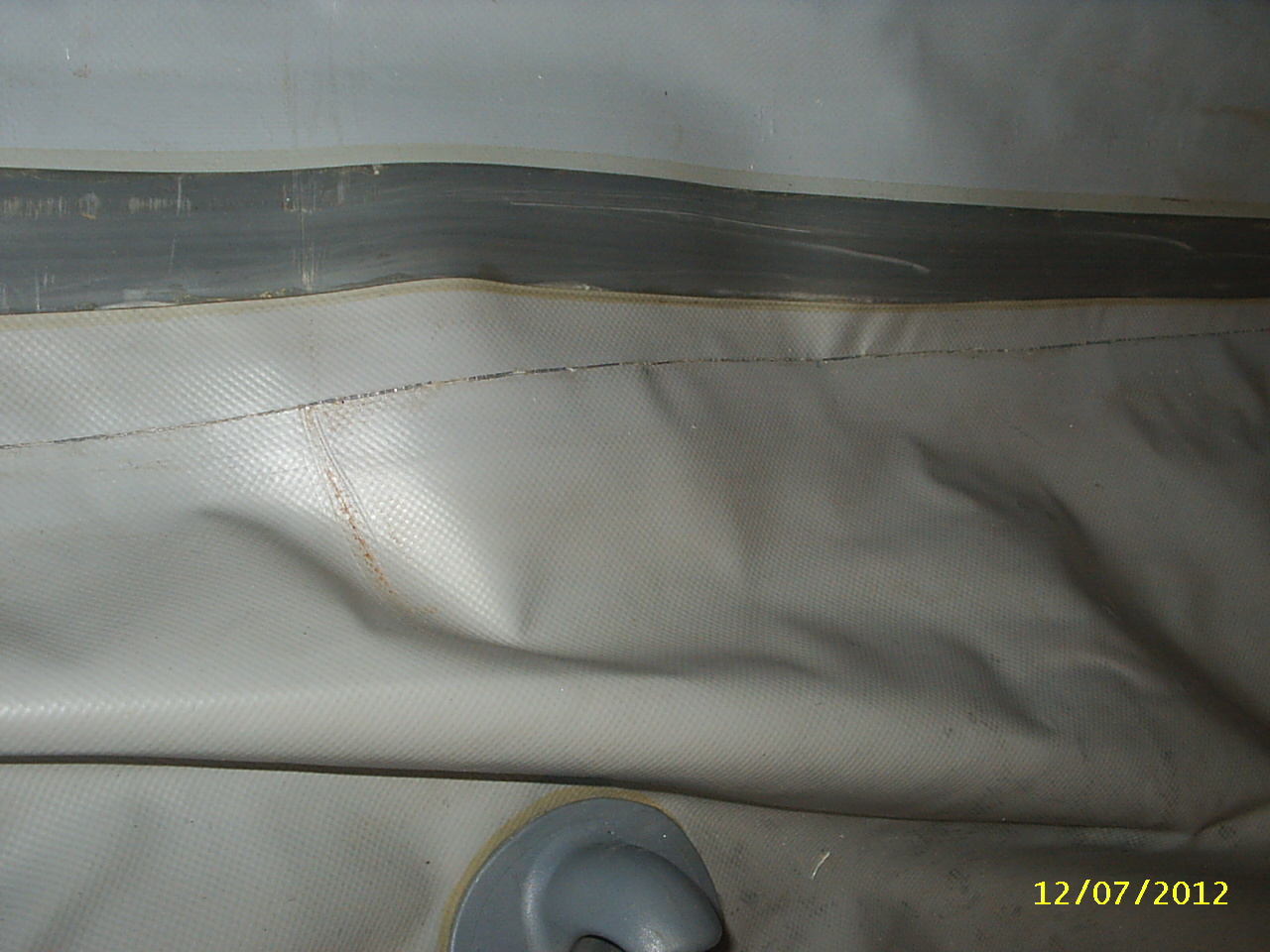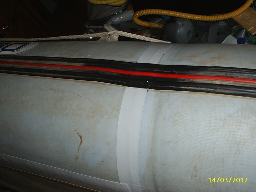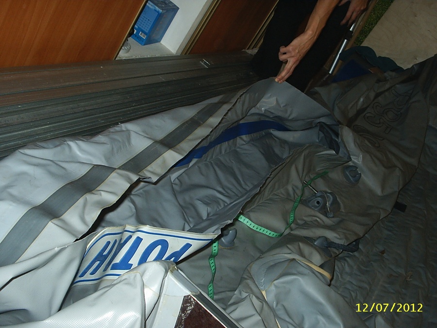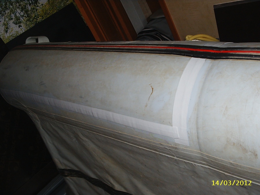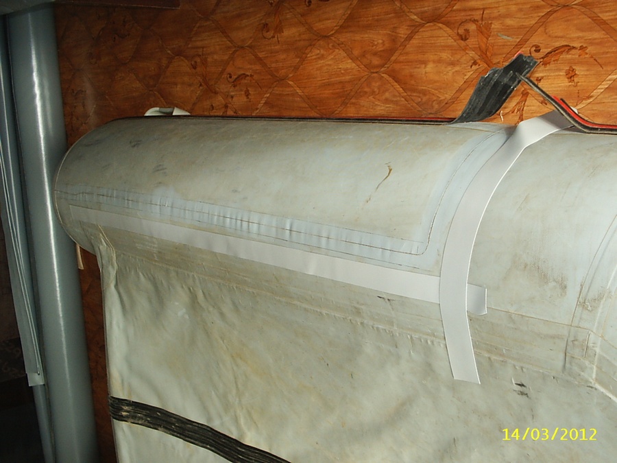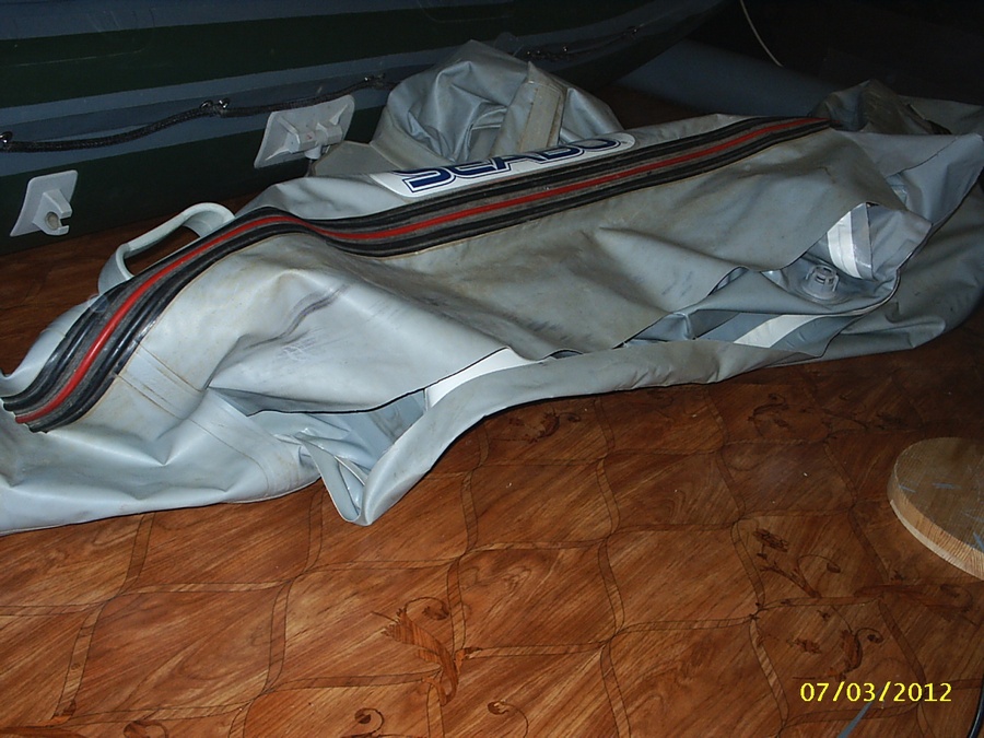 После того как лодка наткнулась на арматуру, получился разрыв по материалу вдоль баллона длинной 170см.