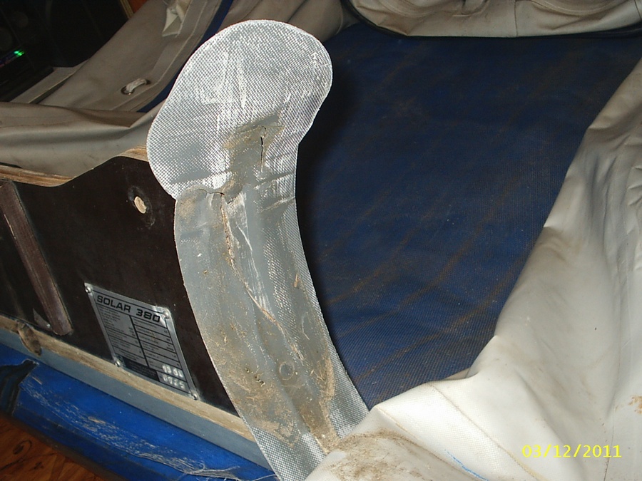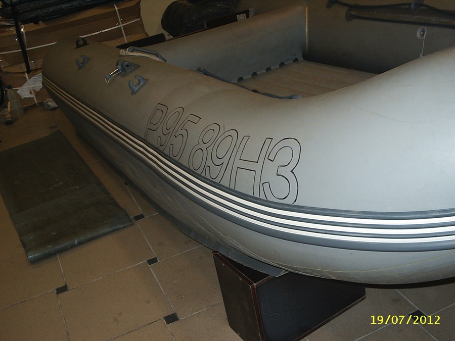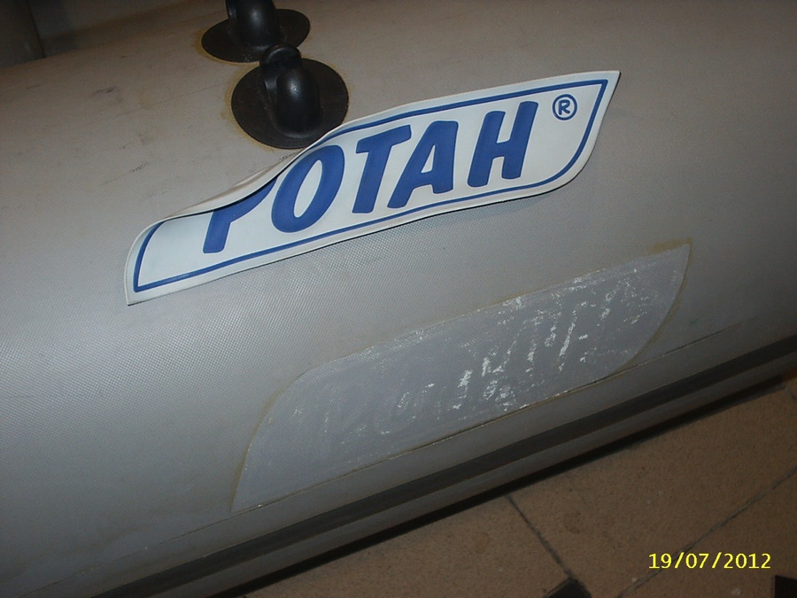 Надув лодку в магазине, мы увидели, что боковая накладка с названием Лодки мешает клеить наружнюю тесьму. Пришлось ее демонтировать