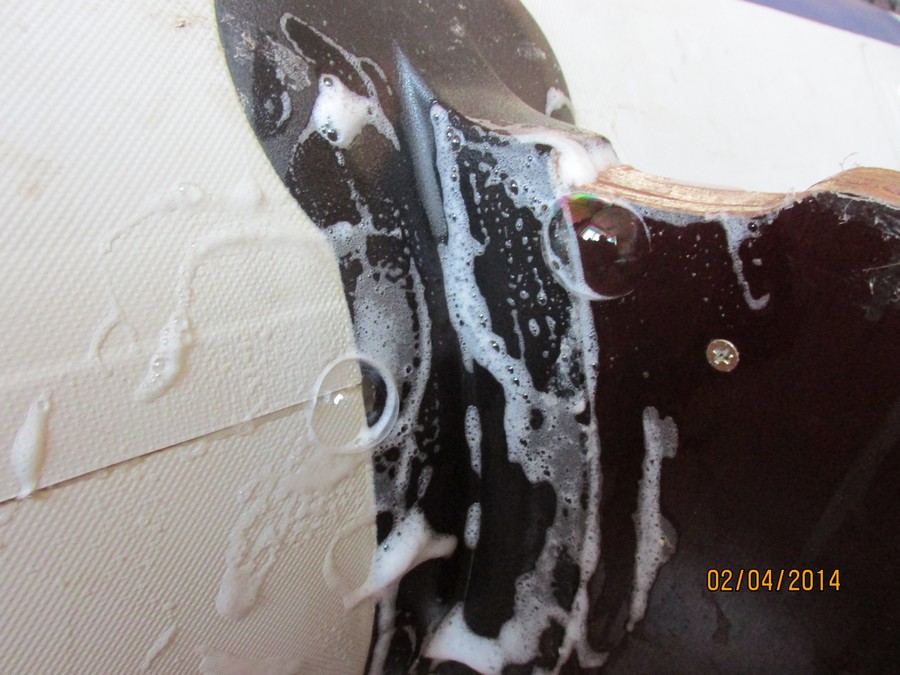 Также на днище в местах крепления транца и уголковой ленты был нанесен просто огромный слой клея который уже невозможно было удалить.