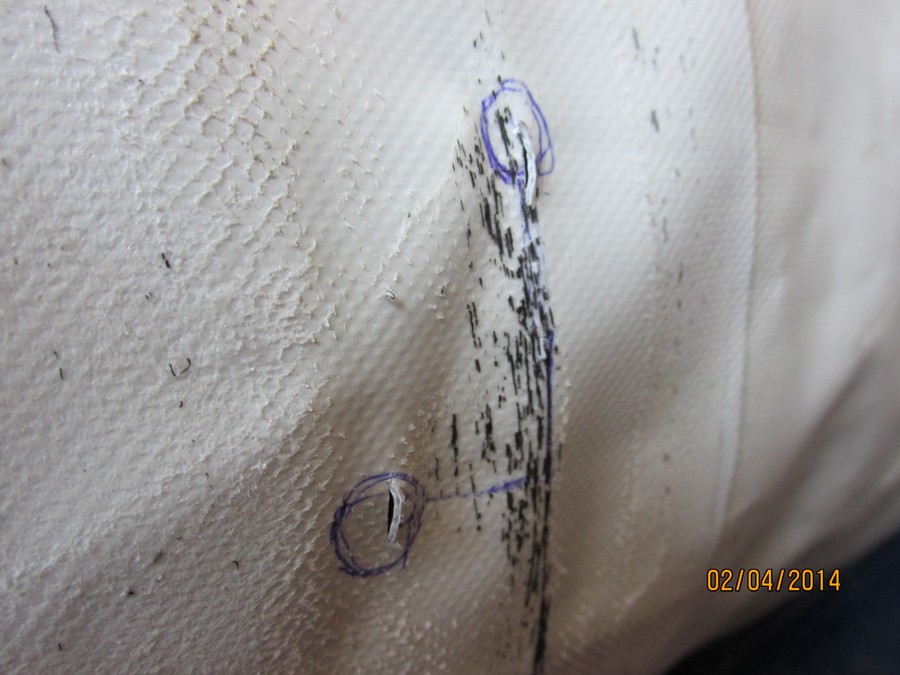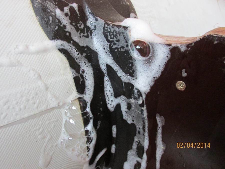 Когда мы демонтировали транец, мы увидели причину травления. Видимо демонтаж старого транца проводили чем то острым и пробили баллон в трех местах.