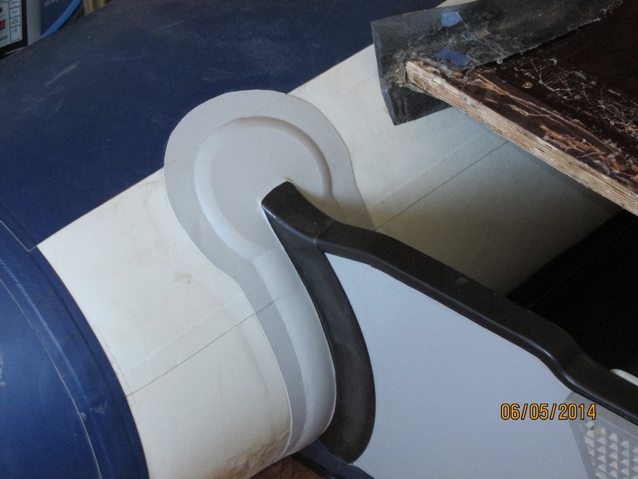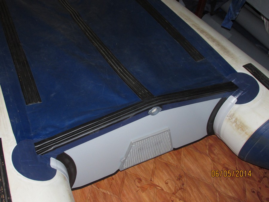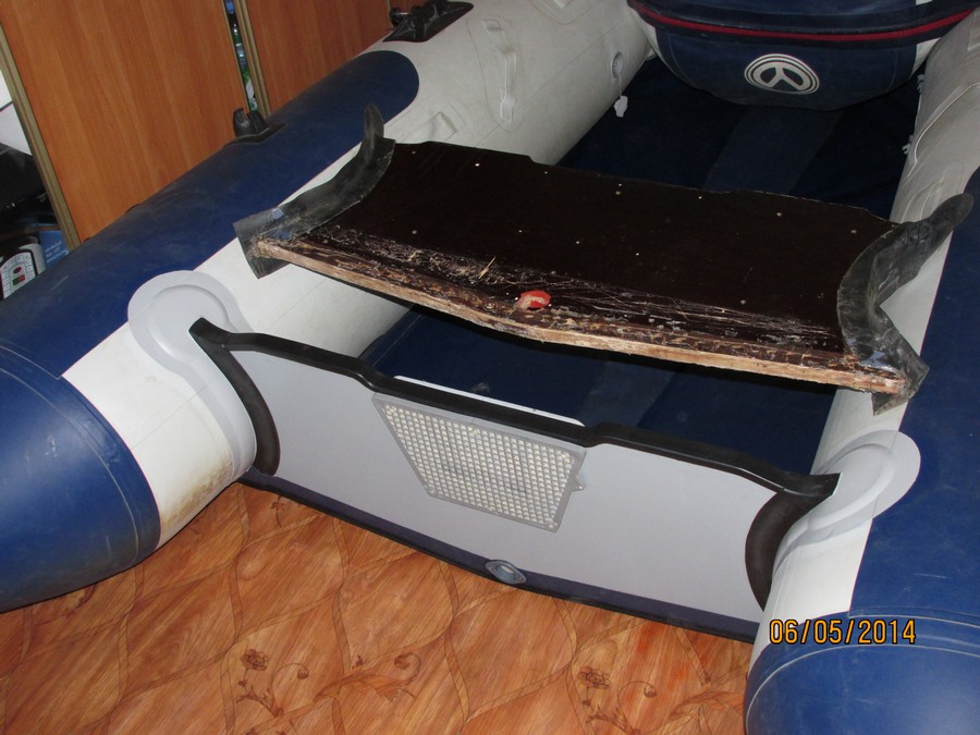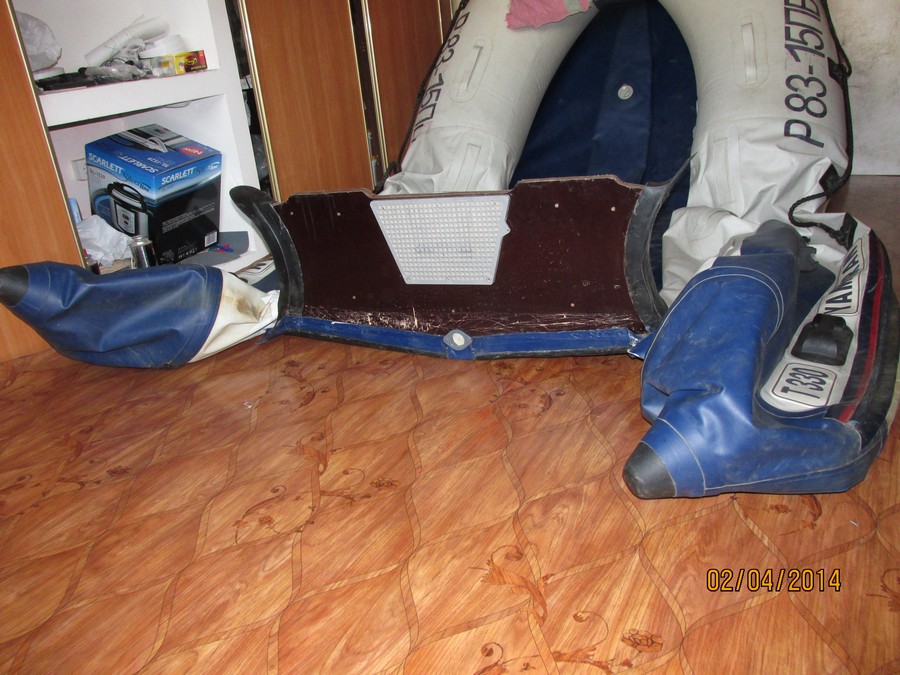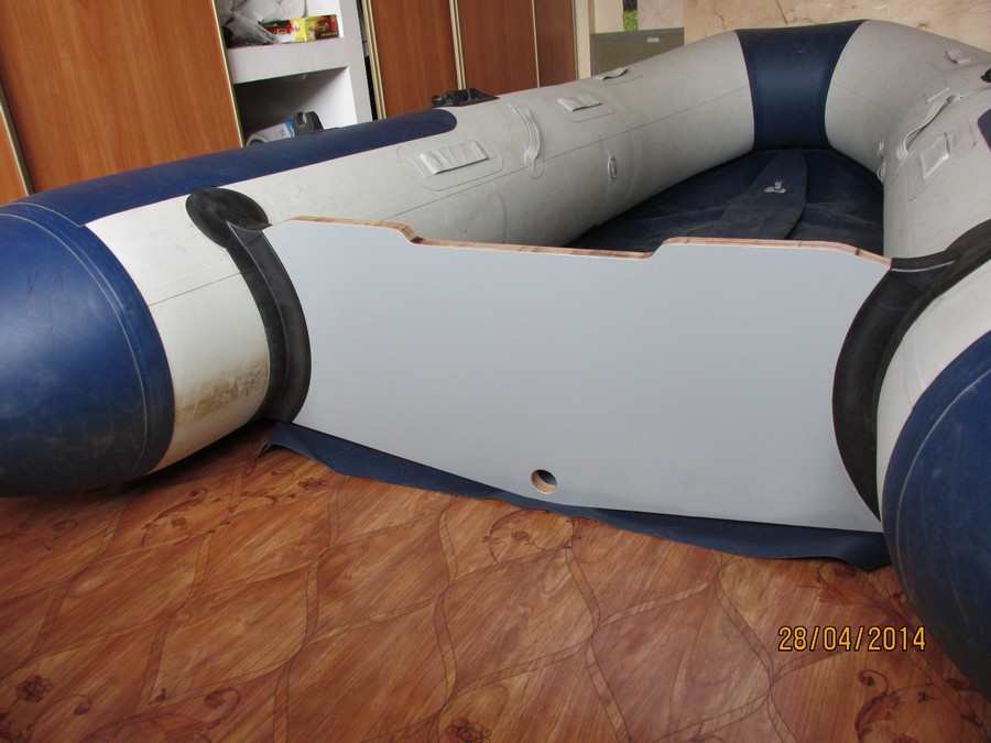 Изготовив транец из березовой фанеры ФСФ и оклеив его ПВХ, Мы вклеили его в баллоны. Предварительно наклеив заплаты на пробитый баллон.