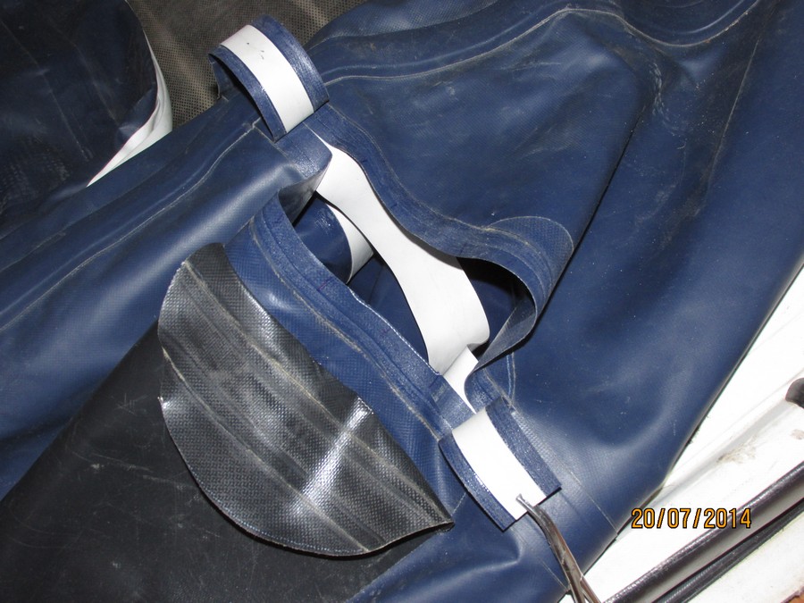 На жаре баллоны повели себя отлично, хотя на концевиках мы даже не поставили наружнюю тесьму. А вот днище на солнце разошлось. Сейчас мы разобрали лодку. Будем собирать уже на двухкомпонентный клей.