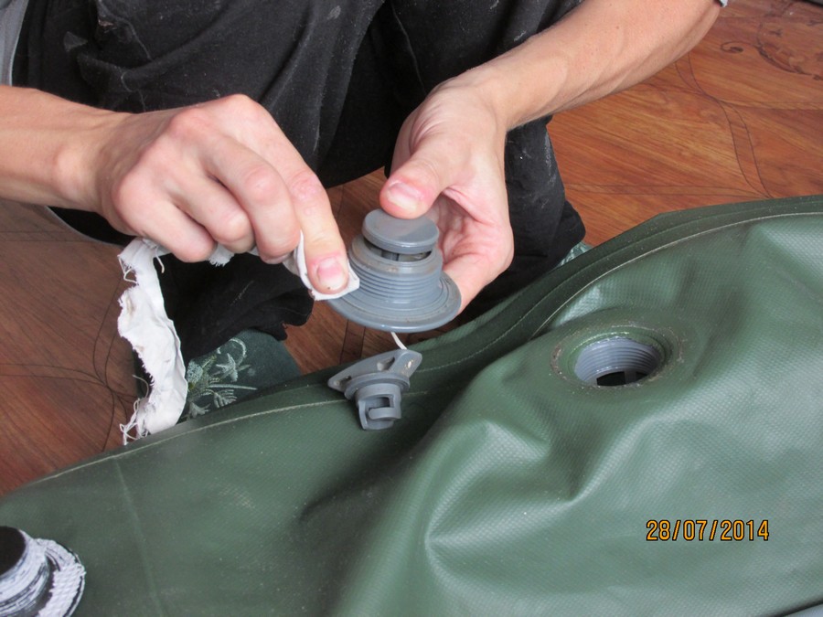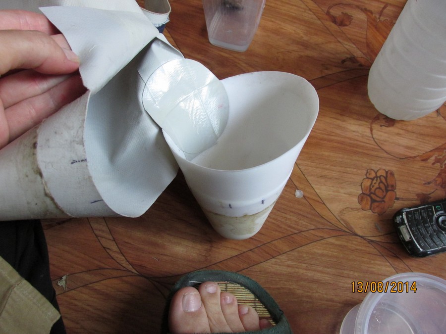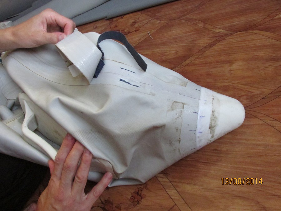 На жаре баллоны повели себя отлично, хотя на концевиках мы даже не поставили наружнюю тесьму. А вот днище на солнце разошлось. Сейчас мы разобрали лодку. Будем собирать уже на двухкомпонентный клей.