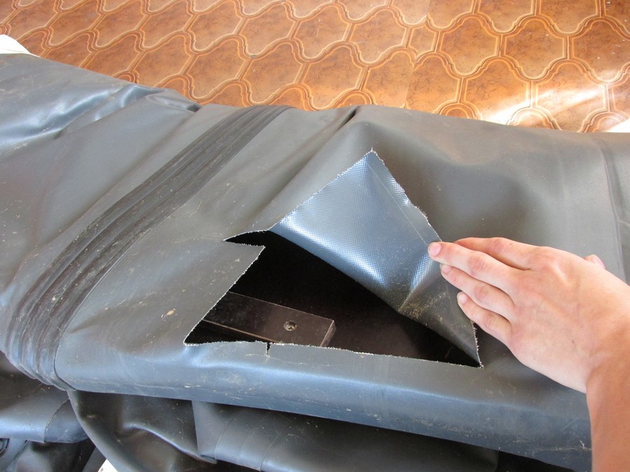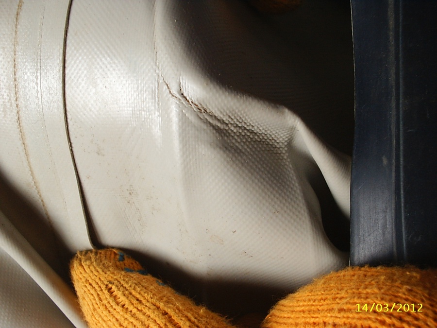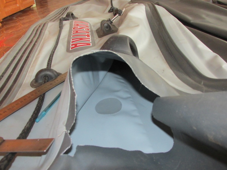 Наиболее часто возникают подобные травления на местах сгибов материала при сворачивании лодки. Часто встречаются в районе транца. Вот подобный ремонт http://kolarboat.ru/?p=418