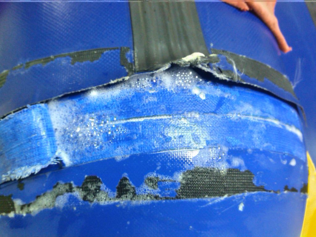 Здравствуйте ув. форумчане. Ситуация у меня очень специфичная. Имеется не новый "банан" для покатушек зимой и летом. Проблема вот в чем. Баллоны "травят" в нижней части, из под ленты, закрывающей стык баллона и конуса баллона. Начал пробовать убирать ленту - столкнулся с оч хорошим клеем производителя. Нагрев помогает оч плохо. Лента отрывается с большим трудом. Корд обнажается то на ленте, то на ткани. Греть пробовал по разному и дольше и слабее и сильнее.... Результат одинаковый. Вобщем убрал часть ленты, чтобы увидеть откуда пузырит. И вот тут я увидел "чудеса". Воздух травит не только в стыке ткани, но и еще по кромке ранее приклееной ленты. Что это может быть? Прежний хозяин пытался эти места закрыть с помощью большой заплаты из черного пвх. Клеил подозреваю на космофен. Следы убраной черной заплаты тоже видны. Да, еще травит воздух в некоторых местах, где остатки черного пвх. Вобщем прошу помочь советом: