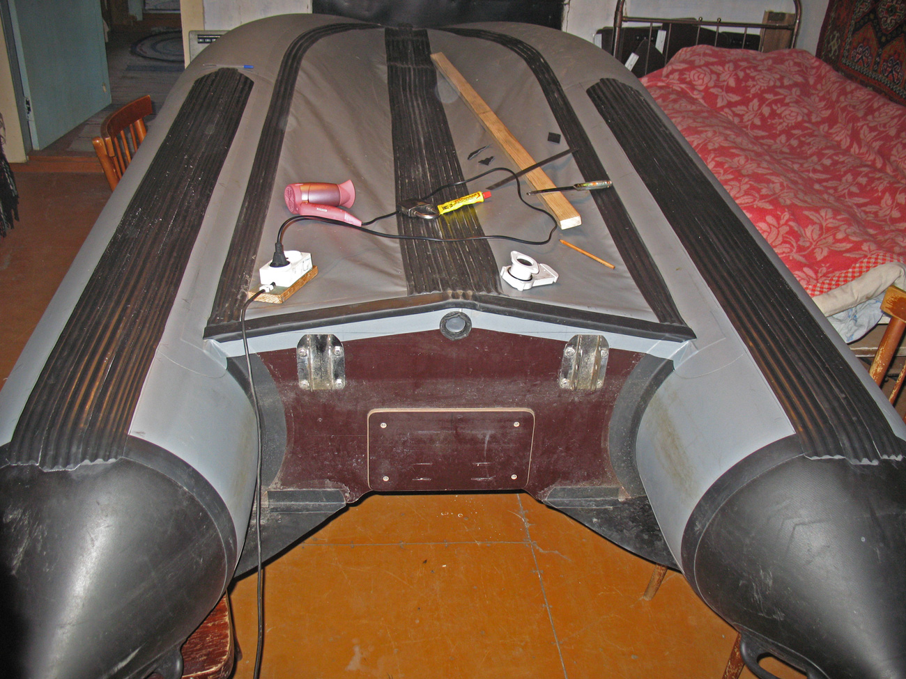 Имеется лодка ПВХ. Дырку найти не могу, когда один баллон качаю вроде где то шипит, второй накачиваю уже не слышу что бы шипело. Но зараза за ночь спускает прилично. Возьметесь вылечить? Ну и примерный бюджет хотелось бы.