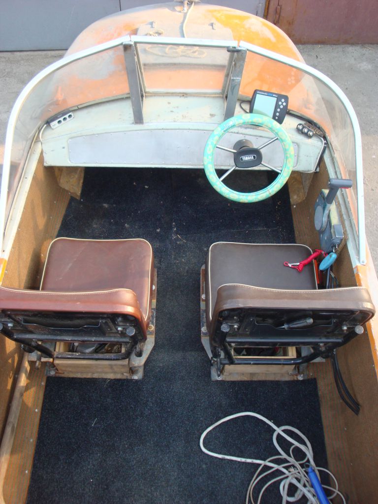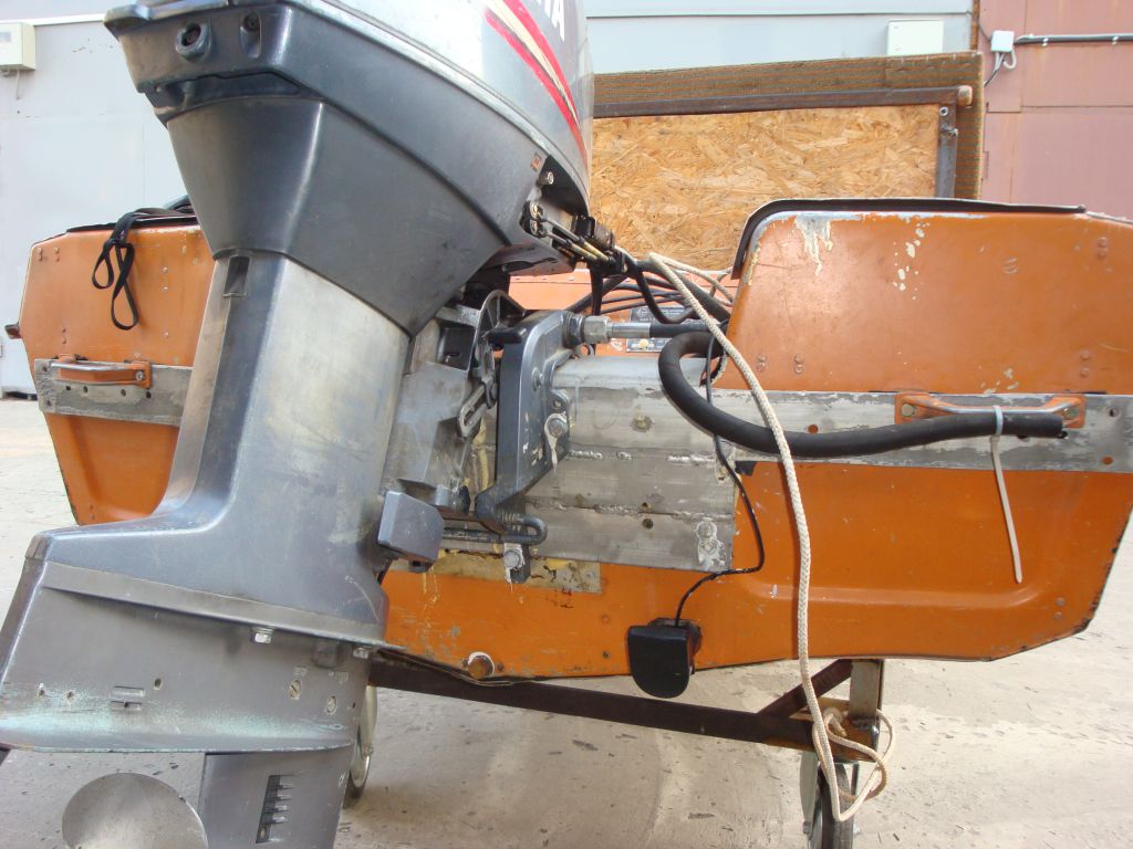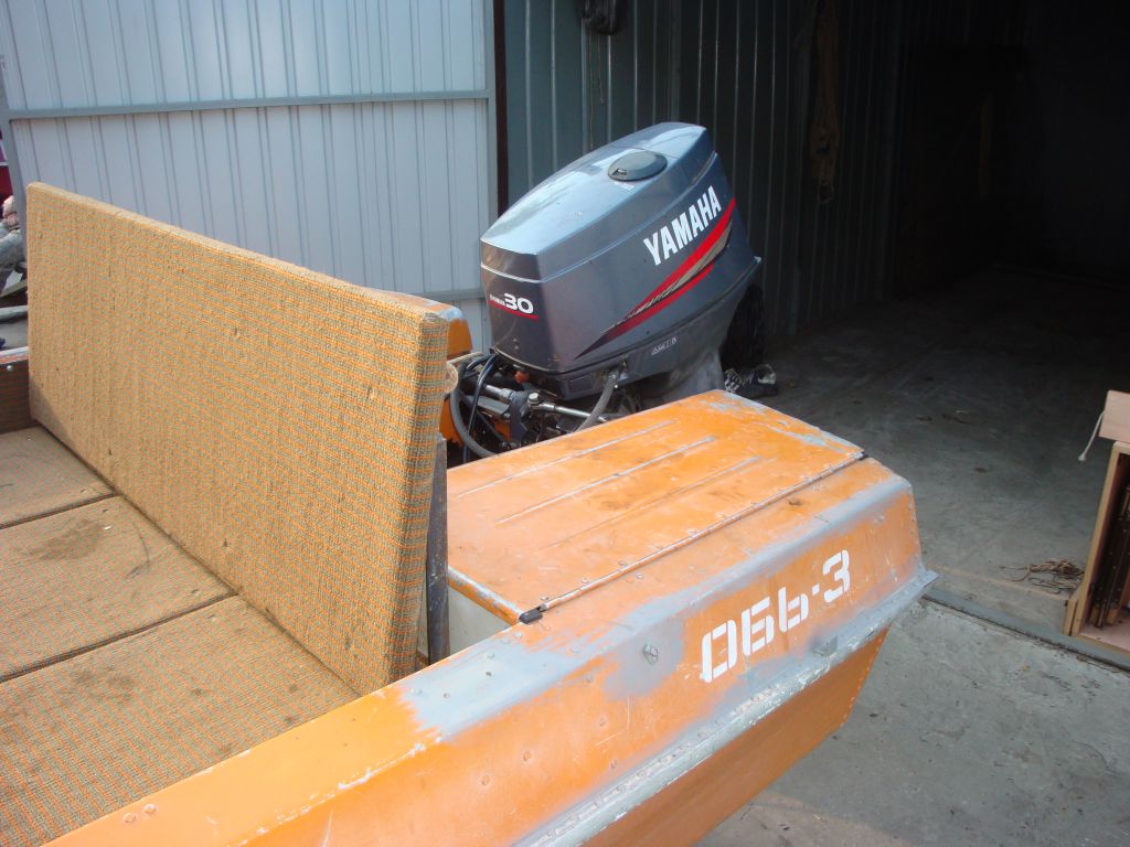 Корпус ровный, не бежит, не крашен. Проложен пенопластом, не гремит. Салон обшит ковролином. Транец усилен алюминиевыми деталями, трещин нет. Рыбопоисковый эхолот, автоматическая помпа, аккумулятор, стационарный фирменный бак на 50 литров. Двигатель Ямаха 30л.с. стартер, цилиндров три, лубрикатор. Лобовое стекло с калиткой. Цена 155000р. Разумный торг.