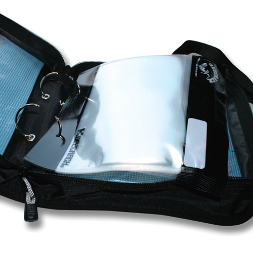 2. Сумка-кошелёк Geecrack GEE806 WORM BAG - оригинальное и практичное решение для хранения силиконовых приманок на рыбалке. Данная модель имеет большое количество прозрачных отделений для размещения в них пакетиков с резиной. Все ячейки располагается на кольцевом держателе; помимо надежности, такая система сама адаптируется под объем каждого пакетика индивидуально, также имеется возможность снимать кассету с пакетами. На внутренней стороне обложки этой рыболовной сумки есть сетчатые карманы с молниями для размещения пакетов с крючками или иных предметов, необходимых для ловли. Сумка снабжается подвесным карабином, что позволяет пристегнуть её к куртке или рюкзаку.