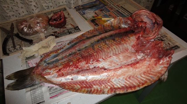 Как заготовить материал "рыбный" для таксидермии: 1. Чем целее рыба будет, тем лучше - т.е., должна быть рыба свежая, с цельно полными плавниками; 2. Рыбу желательно сфотографировать - глаза, внешний вид (сверху, сбоку и брюхо); 3. Если нет возможности сразу сделать чучело, то трофей необходимо заморозить (целиком) - осторожно заверните рыбу в мокрую и чистую материю (например, наволочка или простыня), затем в бумагу (газеты) и далее в пару целофановых пакетов (чистые мешки для бытового мусора), которые завяжите на узел. Всё это в морозильную камеру (или в снег, ледник). Если нет холода, то, на крайний случай, можете засолить рыбу, что, всё таки, нежелательно. В спирт можно, но есть ряд нюансов - спирта много нужно, да и спиртование в далнейшем повлияет на выделку рыбы. Мясо рыбы, естественно, потом не пожарить или не сварить... ; 4. С головой рыбы (например, крупной щуки, тайменя и судака) поступают точно так же - фотографируют (желательно!), упаковывают и замораживают. Крайний вариант - обильно засолить. Голову отрезают с частью "шеи", оставляя при голове грудные плавники, т.е., см 10-15. Жабры, язык и щёки не удалять, если хотите, что бы ваш трофей был сделан качественно и художественно красиво... Как то так)...