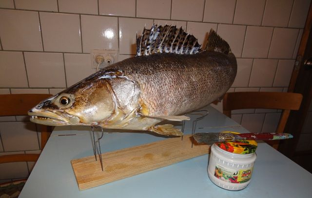 Вот, некоторые основные фото по изготовлению чучела судака.