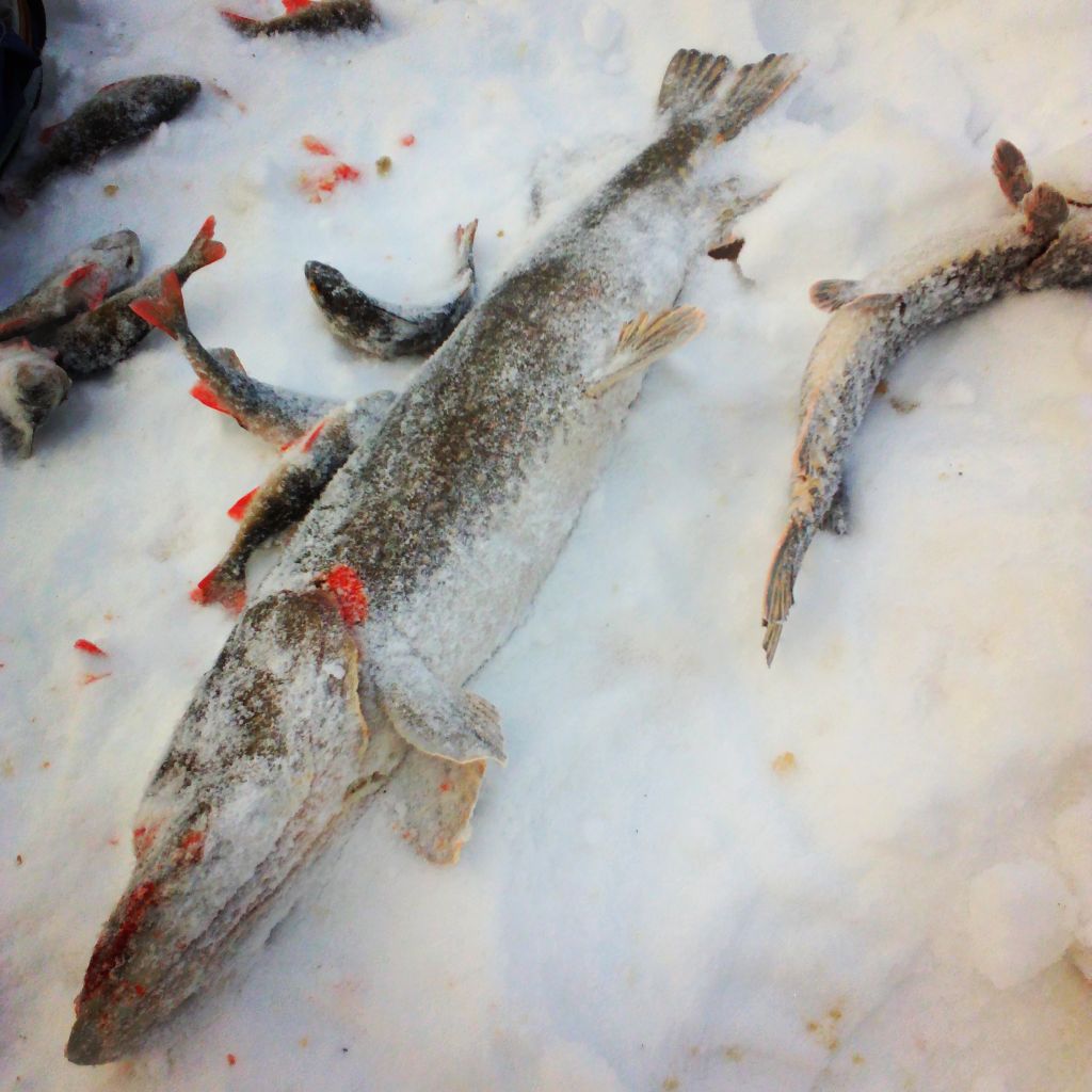 погода переметает все ожидания. хороший клёв в морозные деньки сменился непредсказуемостью снежной оттепели. снег валит и валит выдавливая воду на лёд, ветра как в феврале, давление за день скачет, то вверх, то вниз. 20 окуней и пара чебаков это уже хороший улов для такой погоды.