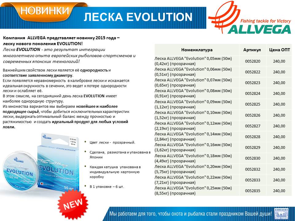 Поступление мотособак Baltmotors. Поступление Кубов woodland. Поступление зимней лески ALLVEGA, в том числе новинки ALLVEGA EVOLUTION диаметр от 0.05. Поступление четыре вида зимних ящиков A-elita Поступление монокристалических кивков, цикад , мормышек. Много зимнего товара пришло, перечислил не все.