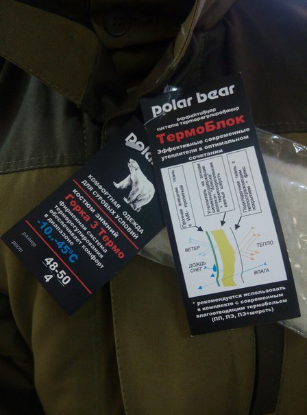 Первая модель: Горка 3 термо. температурный диапозон -10 -45. Утеплитель ПЭ+шерсть. Плюс внутренний слой фольгированное полотно, сохраняющее тепло. Ткань палатка.