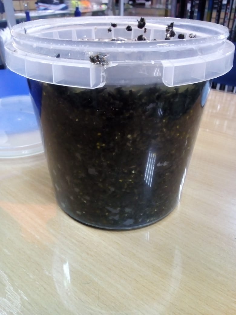 Поставляется в герметичном ведерке , не рассыпется по машине/рюкзаку. Вес 1000 грамм.