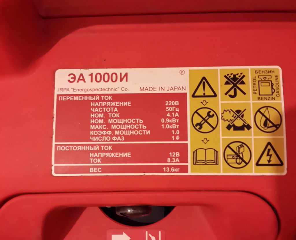 Продам генератор Энерго ЭА 1000 И (он же Elemax SHX1000-R) производство Япония.