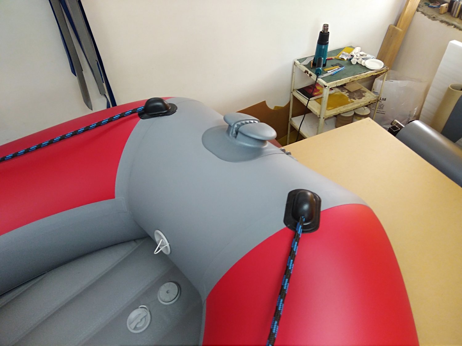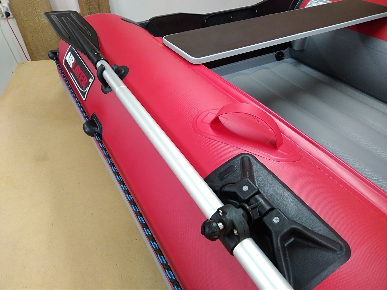 Впереди по бокам установлены дополнительные ручки для переноса лодки.