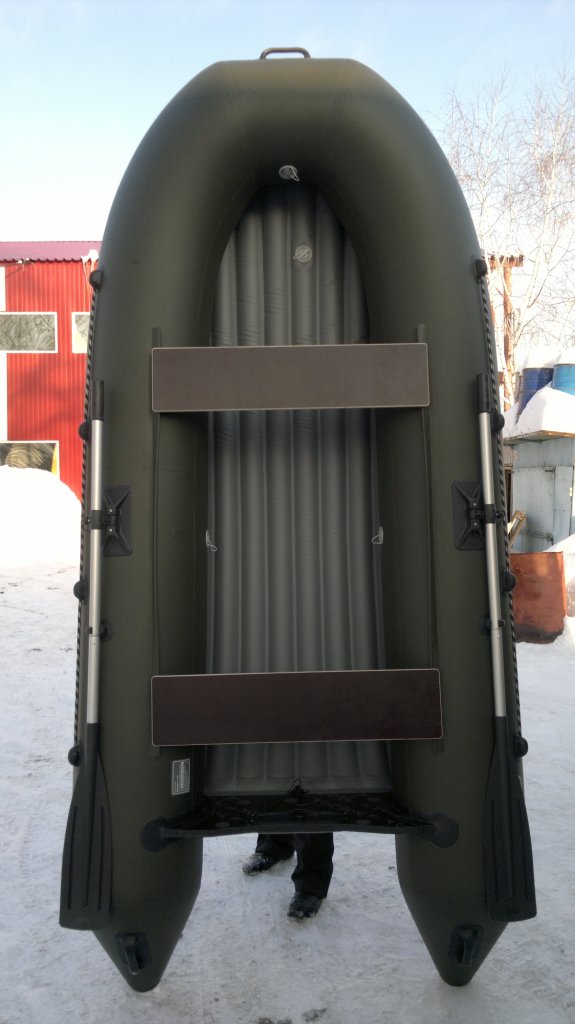 На прототипе дно выполнено из ткани плотностью 1100, в серийной модели будет использоваться ткань плотностью 850 для облегчения веса лодки.
