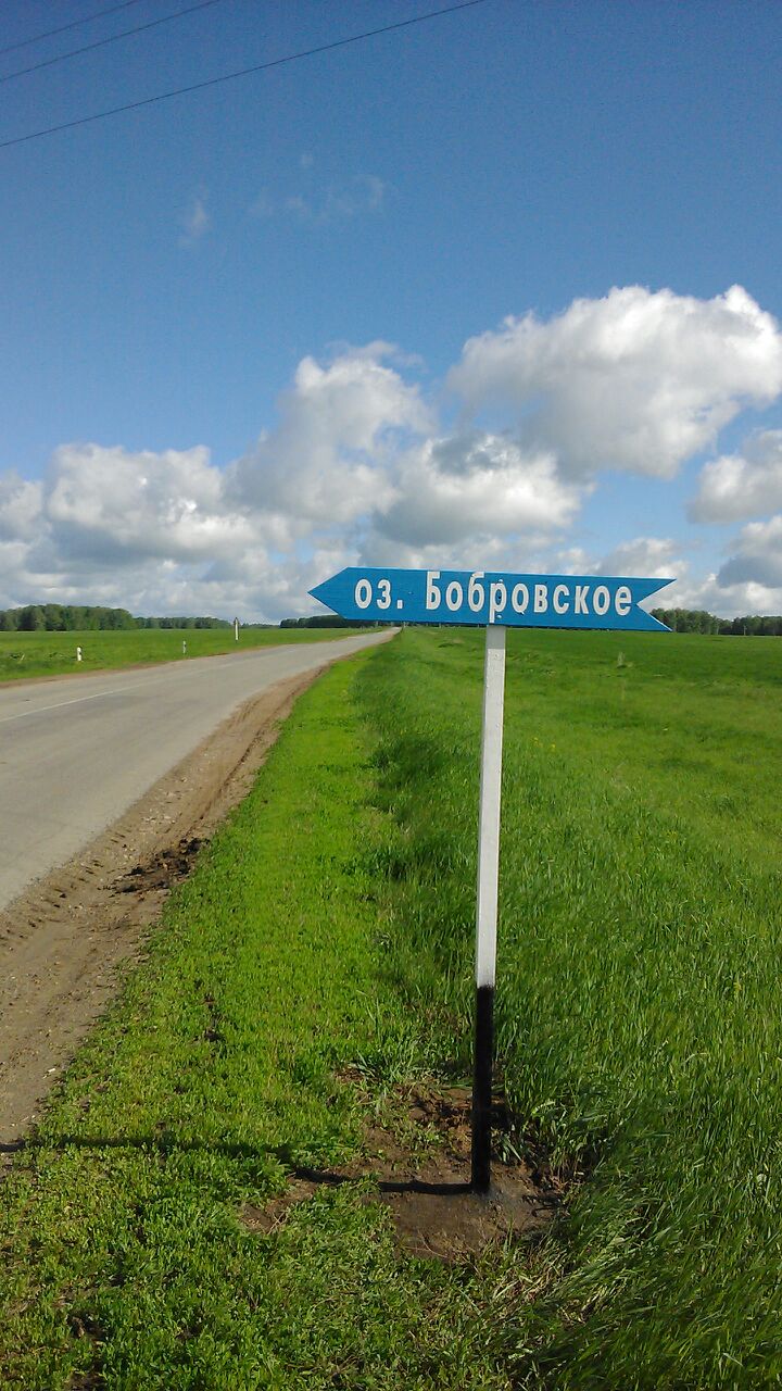 3. Перед свёртком на озеро установлен указатель "оз. Бобровское".