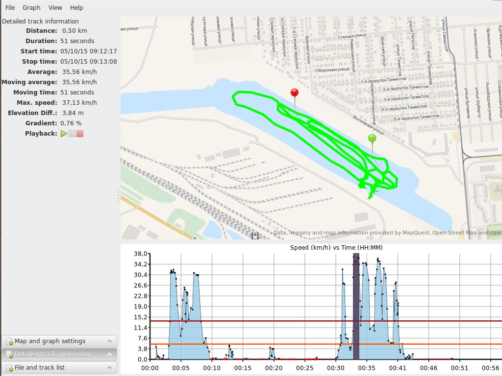 Попутно возник вопрос - а что считать максимальной скоростью? Если просмотреть GPS-трек, то получается, что навигатор дает приличные погрешности. Лодка так сильно менять свою скорость не должна.
