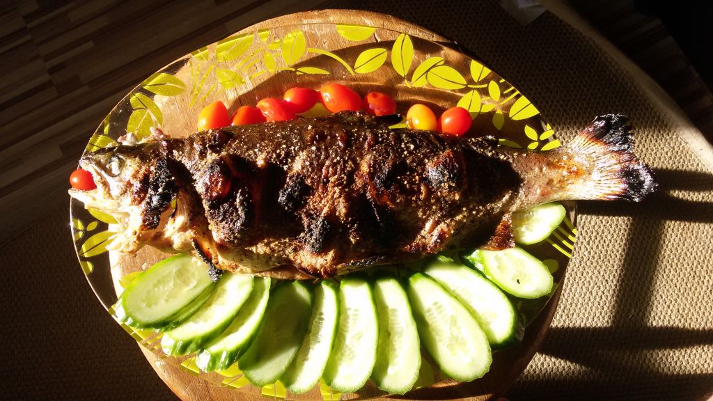 Вчера посетил форелевое хозяйство "Радужный". В маленьком озере форель крайне умная, гоняет мелкого малька верховки и собирает падающих насекомых. Удалось уговорить одного красавца. Тоже сказали что запуск свежей рыбы, будет на той неделе.