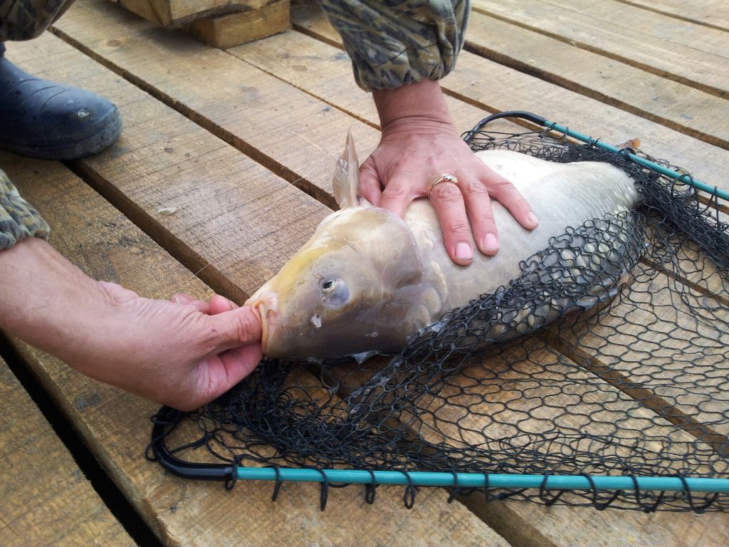 Рыбачили две недели назад, после дождей. Вода мутная, форель не поймали, зато карпиков натаскались вдоволь. Взяли трофейного на 5 кг (на удочку). Забрали несколько на пожарить, остальных выпустили.