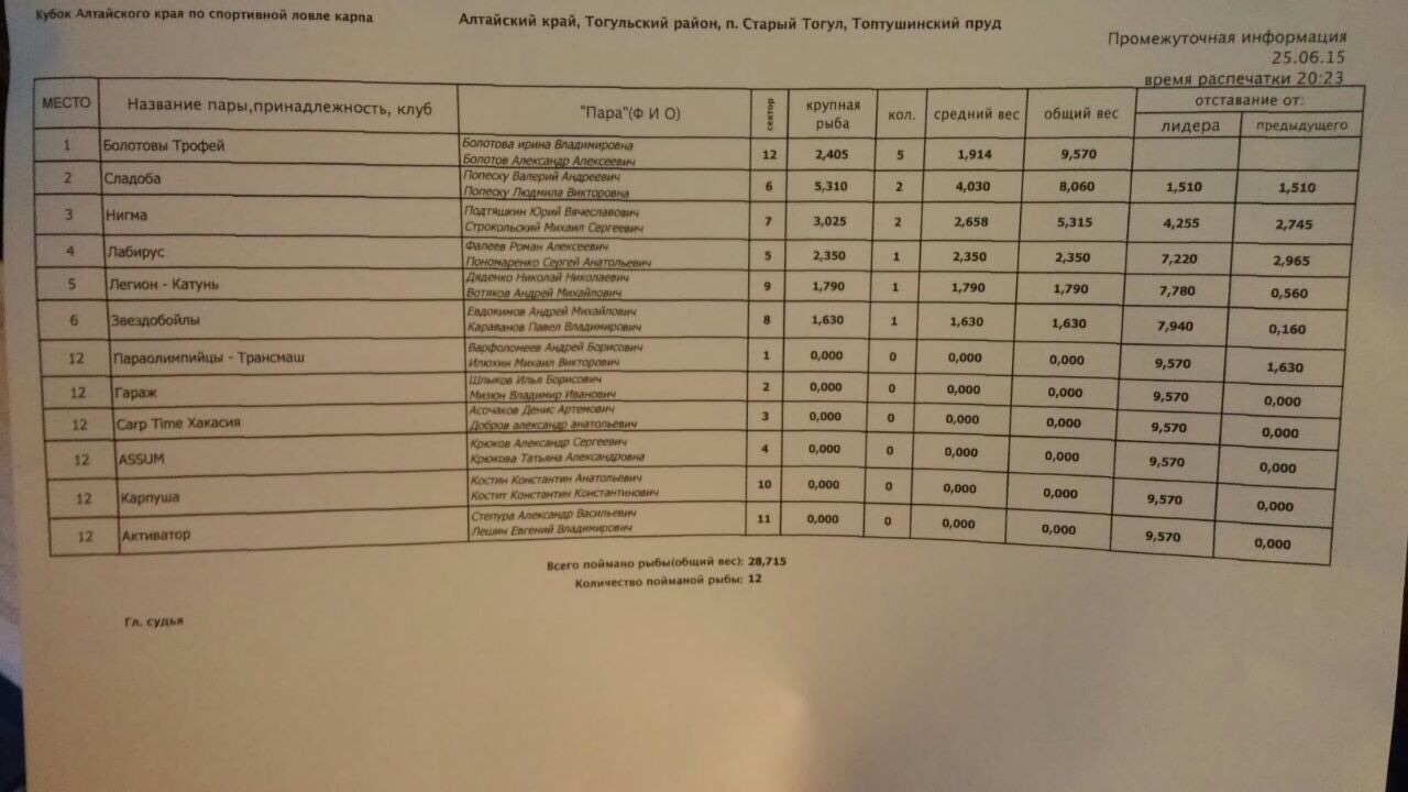 Кубок Алтайского Края по спортивной ловле карпа 2015
