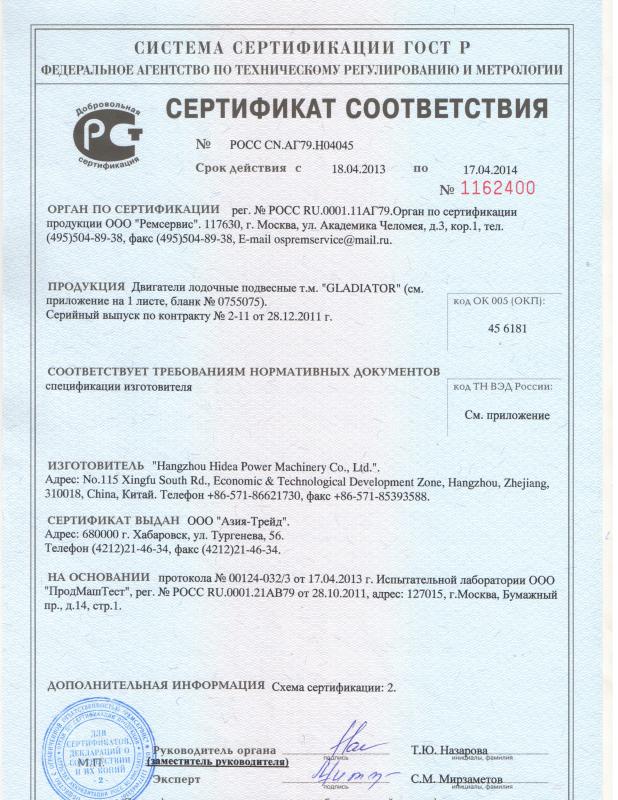 Насколько понял, то рожает его завод Hangzhou Hidea Power Machinery Co., Ltd.Сфинкс сказал(а):Гладиатор - наилевейший мотор! :lol: Ни кто не знает кто его рожает! :lol: Это цыганёнок какойто...![]()