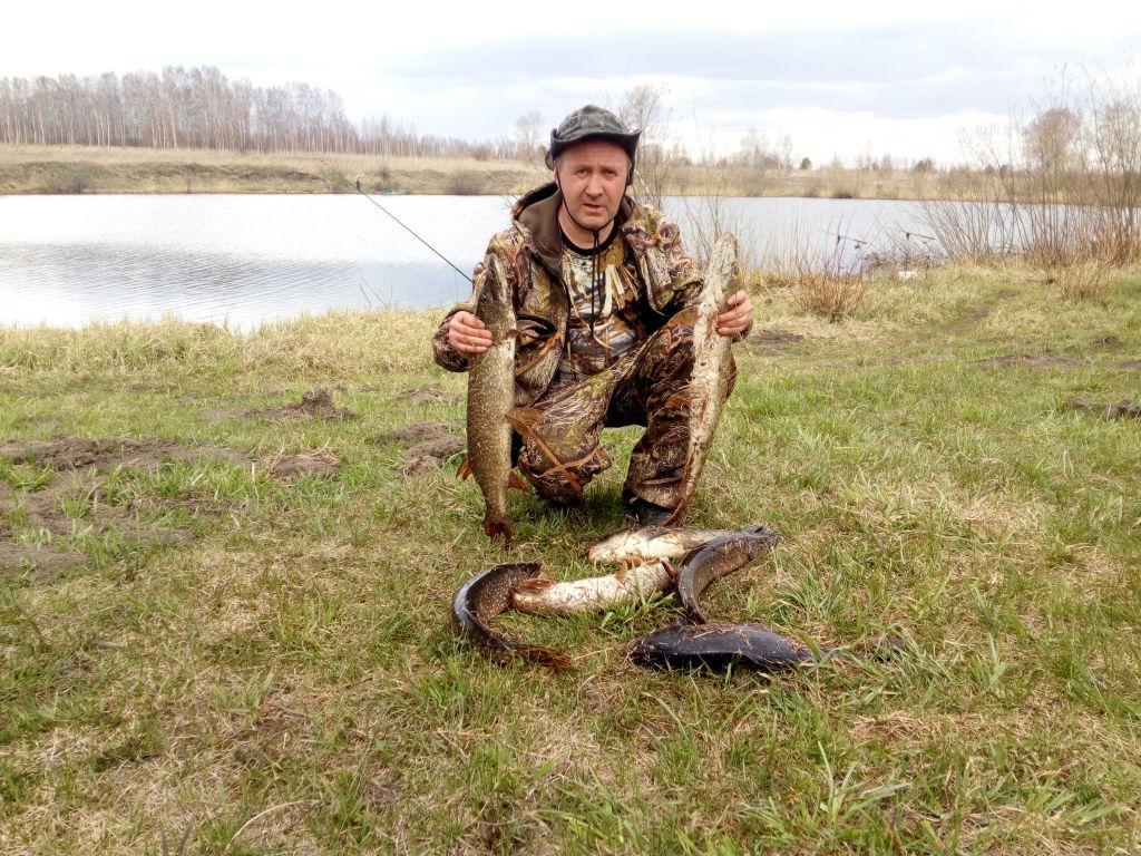 Выходные провёл на данном водоёме.Последний раз был прошлой весной. Карп только очухивается ,но двух штук всё таки взял( общим весом 4 кг.) Соседи взяли по одному. Но вот по щуке оторвались почти все.Друг с утра воскресенья до обеда 7 шт.зачётных. Я своих не считал ,одна пошла на уху,другие обратно в озеро. Домой взял 4 штуки. Самая большая вытянула на 5.5кг.(хотя на фото выглядят меньше, но перевешивал несколько раз. ) Остался доволен на все 500% . Хозяин ввёл ограничения на щуку,потому что некоторые "добросовестные" рыбачки начали чуть ли не мешками таскать . Куда столько,вроде не война ,голодным обмороком тоже вроде не страдают? Азарт понятен ,но жадность,зачем? Ведь другие приедут да и вы сами в следующий раз,и будете жаловаться что рыбы нет.Поймал на еду,можешь и дальше ловить,но будь добр отпусти.