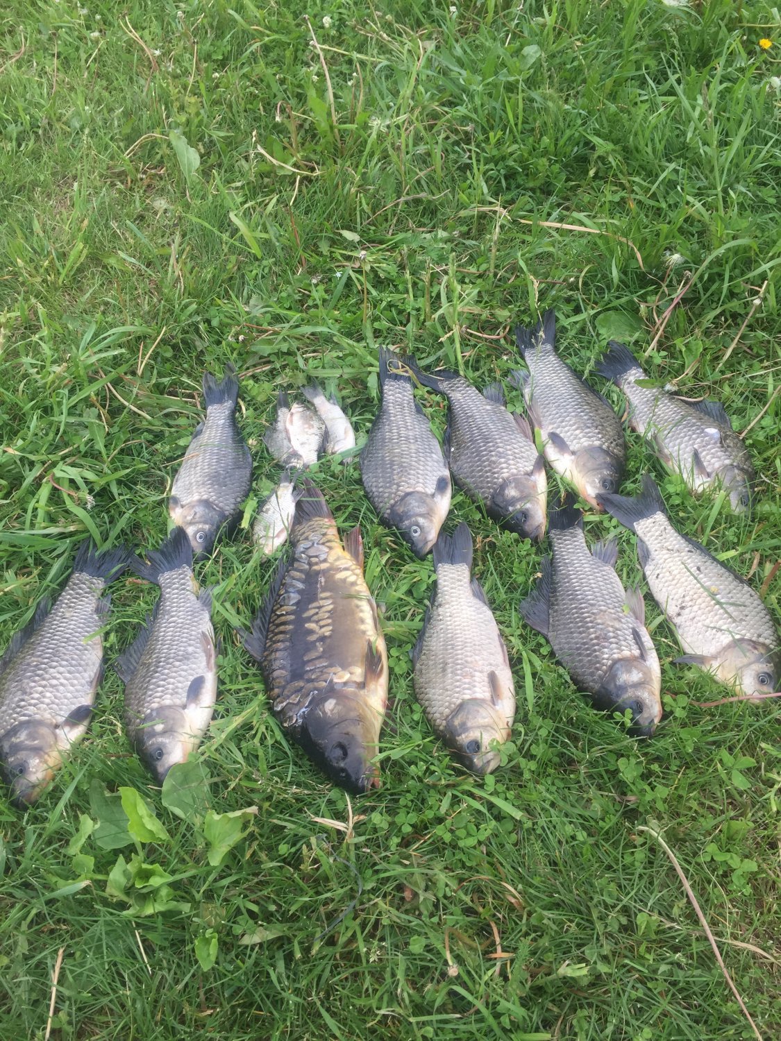 Утром в воскресенье удалось изловить еще пару карпов и штук 20 карасей. Интересно, что с 7 утра часов до 11 клёв выключился полностью. Ближе к полудню карасик снова расклевался, но нужно было уже ехать домой.