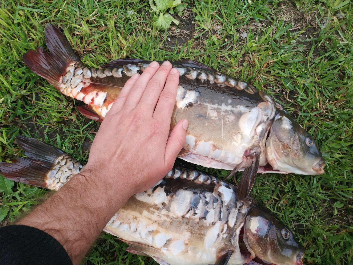 В прошлый уикенд от души наловился! 9 карпов и 1 амурчик свежего привоза время от времени повышали уровень эндорфина на протяжении всей сессии. Почти все было поймано на кукурузу на обычных поплавок. 1 карп был изловлен на фидер (пылик ананас-криль), 1 карп 2+ кг был пойман утром на херабуну 3,6 метра, 0,15 поводок с безбородым крючком, когда я уже просто ультралайтил карасевичей. И это был самый счастливый момент за эти сутки! Карпамуры отпущены домой, караси уехали родителям.
