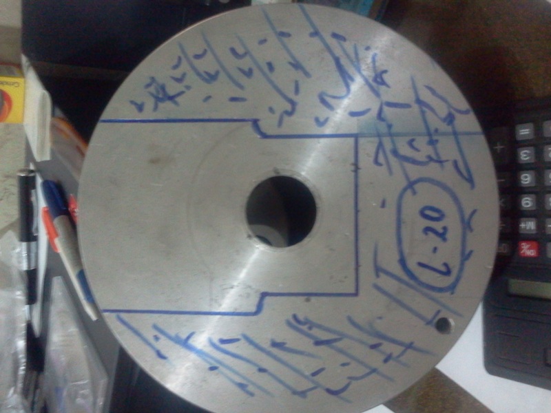 Материал дюраль, всё замалеванное на фото должно было быть сфрезеровано на глубину 17 мм., но мне это не удалось. Поэтому я установил его на ногу через проставки высотой 17 мм. Установить фланец без проставок мешают демпферные пружины на самой ноге. Всю токарку делаю сам так что в этом плане мне легче. а вот с фрезеровкой проблемы.