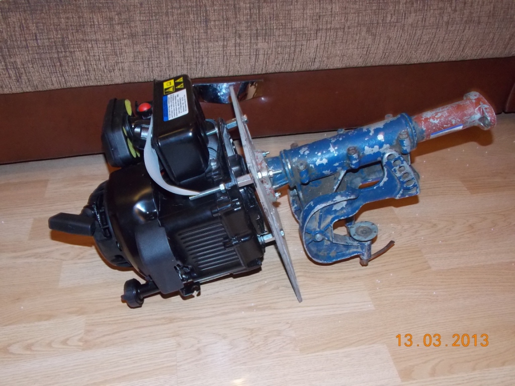 Культиватор был куплен в 2007 году для вспашки двух огородов по 5 соток (моего и матери). Отработал в среднем пимерно 10-12 часов. Масло менял ежегодно. Вертикальное положение коленвала этого двигателя, само заставляет использовать его на подвесном лодочном моторе. В 2012 году купил другой культиватор.