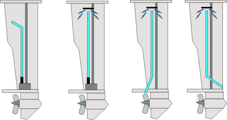 -проложить гофру или патрубок внутри сапога чтобы выхлоп заведомо был в воду, но воду все равно подать на патрубок или гофру, тогда не надо герметизировать сапог-пластина-вал