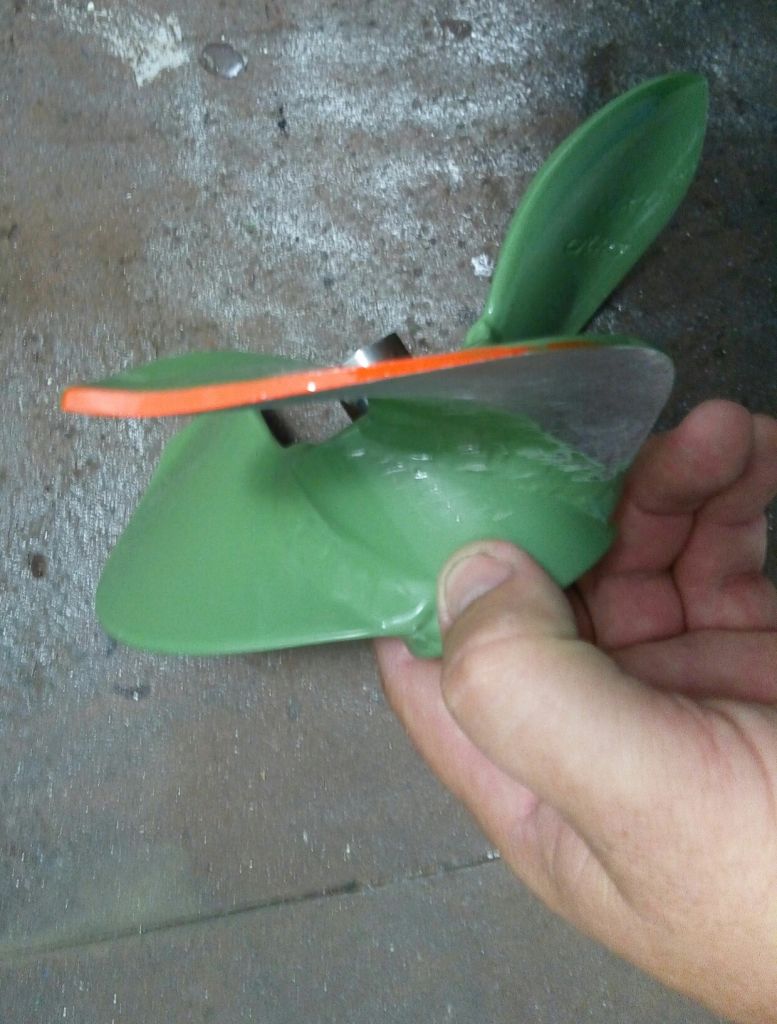 Изначально стоял 3-х лопастной винт...но в моей местности приобладают трава, камыш и мелководная грязь...